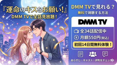 DMM TVなら月額550円(税込)で全35話を見放題で視聴でき、初回14日間の無料体験を利用すれば実質無料で全話を楽しむことも可能です。ハッピーエンド確定で安心して視聴できるこの作品を、ぜひこの機会にチェックしてみてください。