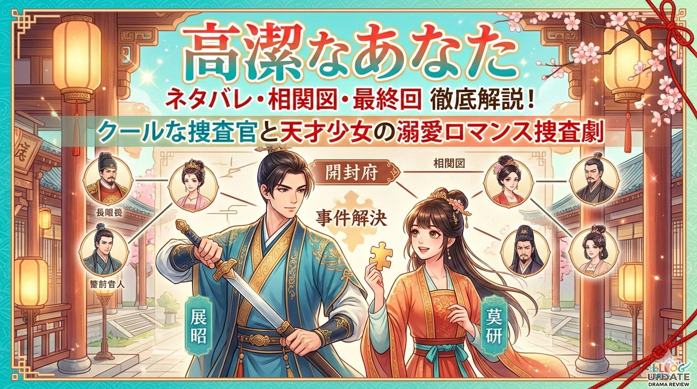 中国ドラマ「高潔なあなた」のネタバレ・相関図・最終回の結末が気になっている方へ。本作は北宋時代の開封府を舞台に、クールな捜査官・展昭と天才少女・莫研が事件を追いながら惹かれ合う溺愛ロマンス捜査劇です。全24話の最終回はハッピーエンドで幕を閉じ、現在DMM TVで全話見放題配信中です。