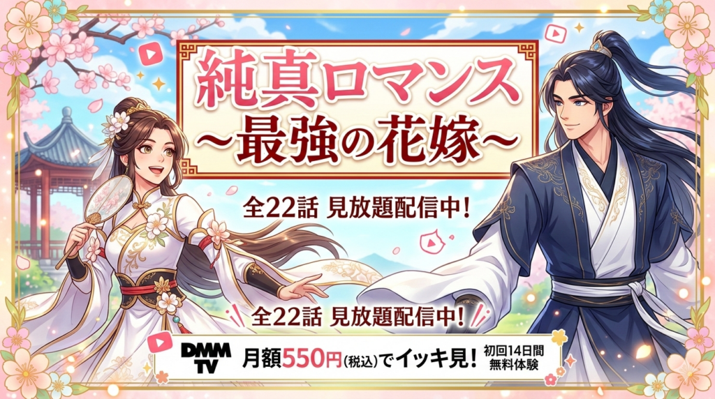 「純真ロマンス~最強の花嫁~」はDMM TVで全22話が見放題配信中。月額550円(税込)で視聴でき、初回14日間の無料体験で全話イッキ見も可能。あらすじ・キャスト・口コミ・見どころを徹底解説します。 -