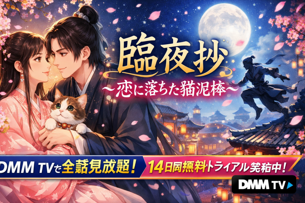 中国ドラマ「臨夜抄~恋に落ちた猫泥棒~」はDMM TVで全8話が見放題配信中。月額550円のDMMプレミアム会員なら追加料金なしで視聴でき、初回14日間の無料体験を利用すれば実質無料で全話イッキ見が可能です。配信状況・あらすじ・口コミを詳しく紹介します。 -