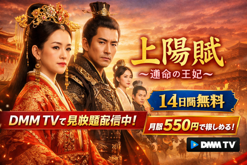 「上陽賦~運命の王妃~」はDMM TVで全68話が見放題配信中。月額550円で1話約8円のコスパ。初回14日間無料体験あり。ただし日本語字幕なし・中国語音声のみ。配信状況や見どころ、口コミ評判を詳しく解説します。 -