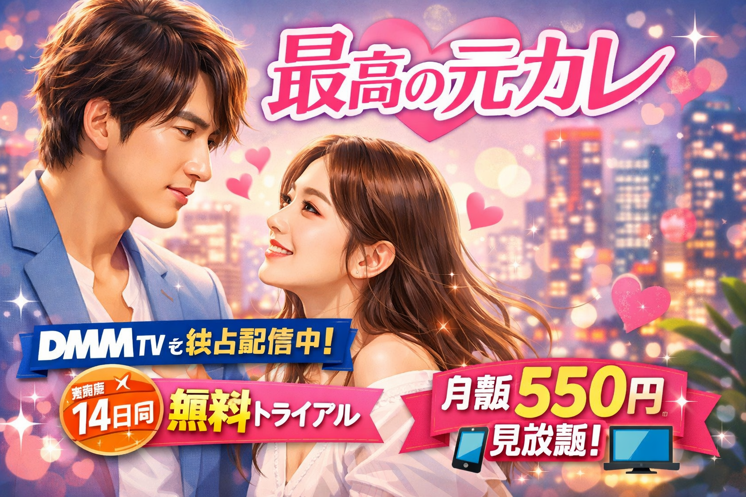 DMM TVでは月額550円(税込)という圧倒的なコスパで、この名作を含む190,000本以上の作品が見放題です。初回14日間の無料体験を活用すれば、まずはお試しで視聴を始めることができます。まだ「最高の元カレ」を見たことがない方も、途中でリタイアしてしまった方も、ぜひこの機会に改めてDMM TVで全話一気見してみてください。