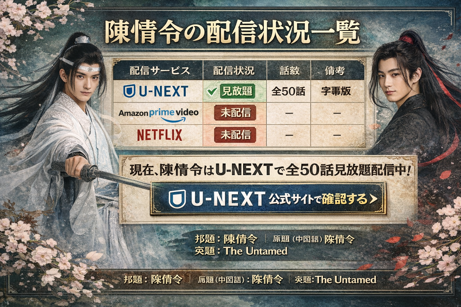 陳情令はどこで見れる?全50話見放題の配信サービス徹底比較【2026/03最新】